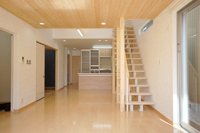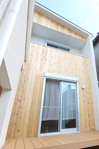 天然木をアクセントにした外壁とLDK床暖房の家。